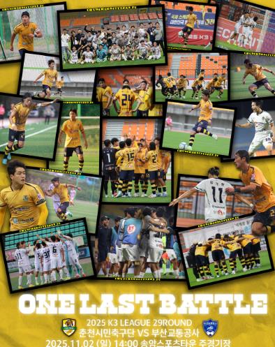 [뉴스노크=김인호 기자] 춘천시민축구단의 2025 시즌 마지막 홈경기가 오는 11월 2일 오후 2시 송암스포츠타운에서 열린다.