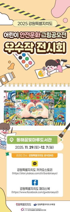 [뉴스노크=김인호 기자] 동해꿈빛마루도서관은 강원특별자치도가 주관한 ‘2025년 어린이 안전문화 그림 공모전’에서 입상한 우수작품 전시회를 개최한다.