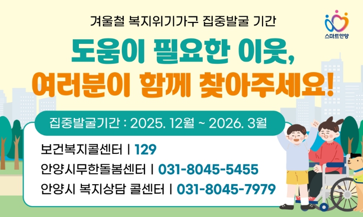 한편, 생계·주거·돌봄 등의 도움이 필요한 가구는 안양시복지콜센터 또는 거주지 관할 행정복지센터에서 상담받을 수 있다.