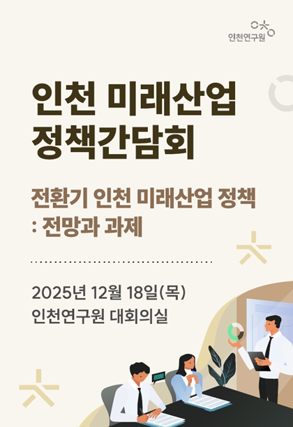 [뉴스노크=김인호 기자] 인천연구원은 2025년 12월 18일 오전 10시, 인천연구원 대회의실에서 '인천 미래산업 정책간담회'를 개최한다.
