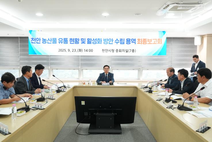 천안시는 지난 23일 시청 중회의실에서 천안 농산물 유통 현황 및 활성화 방안 수립 용역’ 최종보고회를 개최했다.