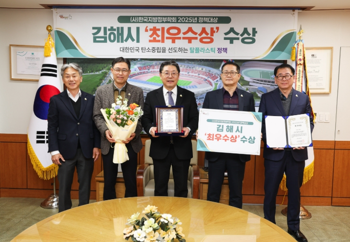 [뉴스노크=김인호 기자] 김해시는 (사)한국지방정부학회 주관 2025년 지방정부 정책대상에서 ‘대한민국 탄소중립을 선도하는 김해형 탈플라스틱’ 정책으로 최우수상을 수상했다고 2일 밝혔다.