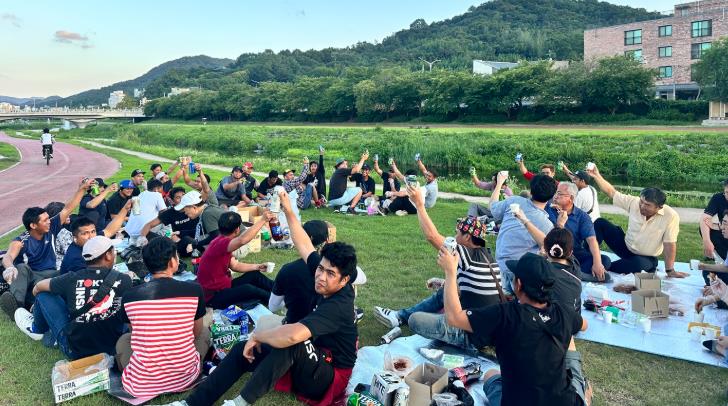[뉴스노크=김인호 기자] 정읍시와 샘골농협이 지난 25일 정읍천변에서 공공형 외국인 계절근로자를 위한 치맥파티를 열고 폭염 속 현장을 지킨 근로자들의 사기 진작에 나섰다.