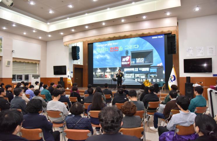 또한 소방관 구조훈련 현장사진과 영상, 봉화소방서가 추진하고 있는 다양한 안전정책을 소개하며, 알차고 유익한 강의를 펼쳤다.