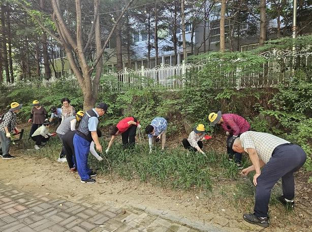 ▲ 파주시 운정1동 실버경찰대 봉사단, 마을 정원 가꾸기에 구슬땀 |