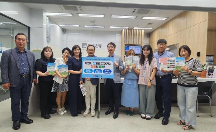 이 가운데 지난 24일, 환경정책과 백근대 과장과 직원들이 전북은행 정읍지점을 찾아 캠페인의 취지와 의미를 설명하고, 적극적인 동참을 요청했다.