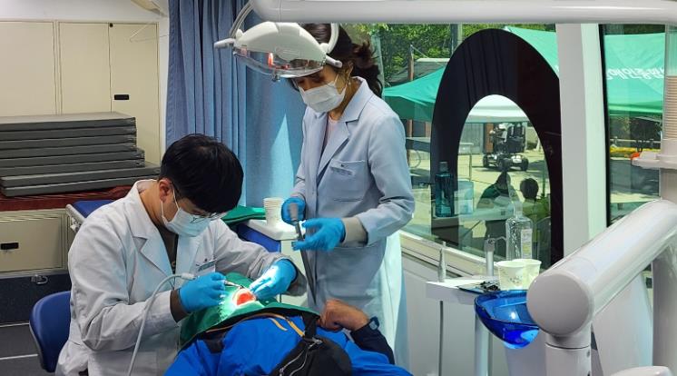 ▲ 적극행정 사진-건강버스에서 치과진료중인 장애인 |