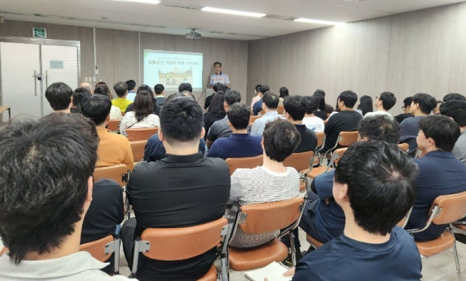 이날 교육은 중대재해처벌법 및 산업안전보건법 이해와 밀폐공간 출입 시 허가 및 작업 절차, 구조 및 응급조치 방법, 구조훈련 등에 중점을 뒀다.