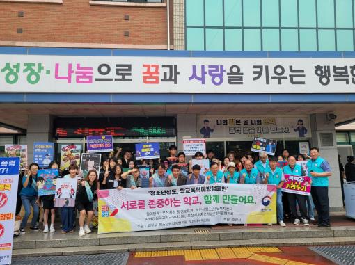 이번 캠페인은 청소년이 각종 범죄로부터 안전하게 보호받고, 건강하게 성장할 수 있는 환경을 조성하기 위한 목적으로 마련됐다. 현장에는 ▲법무부 청소년 범죄예방위원 오산지구위원회 ▲오산시 초·중·고 학교운영위원협의회 ▲내자녀안심하고학교보내기협의회 ▲오산시청소년상담복지센터 ▲오산 대호중학교 학부모회 등 다양한 지역 교육·복지 단체가 함께 참여했다.