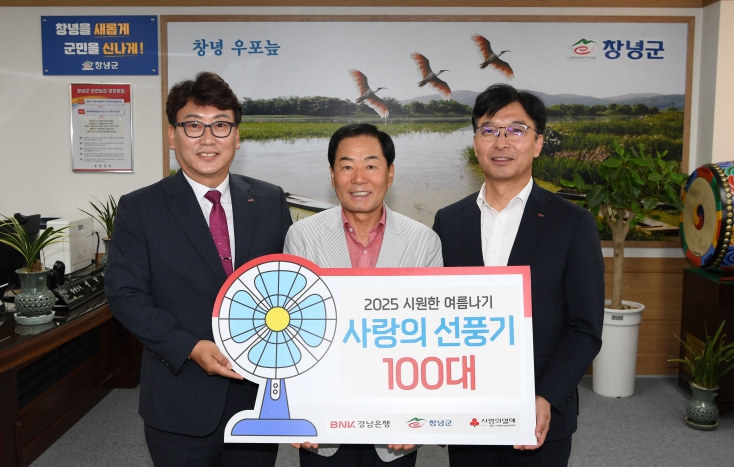 성낙인 창녕군수는 “매년 지역사회에 따뜻한 나눔을 실천해주시는 BNK경남은행에 깊이 감사드린다”며 “전달된 성품은 폭염에 취약한 군민들께 소중히 전하겠다”고 전했다.