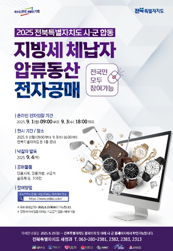 이번 공매는 전북특별자치도 주관으로 9월 1일부터 3일까지 3일간 전북도청 1층 로비에서 전시된다.