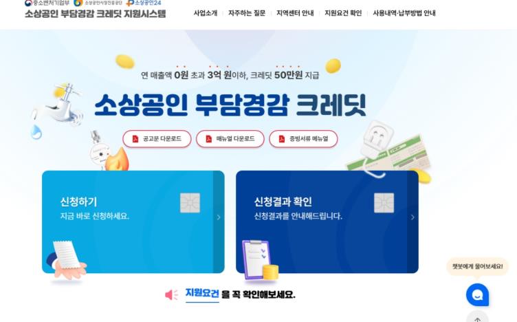 신청은 온라인을 원칙으로 ‘부담경감크레딧.kr’ 누리집이나‘소상공인24’에서 가능하다.