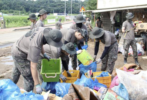 수기사 장병들은 민가와 유원지 상가에 쌓인 토사 제거는 물론, 도로 복구와 배수로 정비, 실종자 수색, 의료 및 방역 지원, 세탁 봉사 등 다양한 분야에서 군민과 함께 땀 흘려 왔다.
