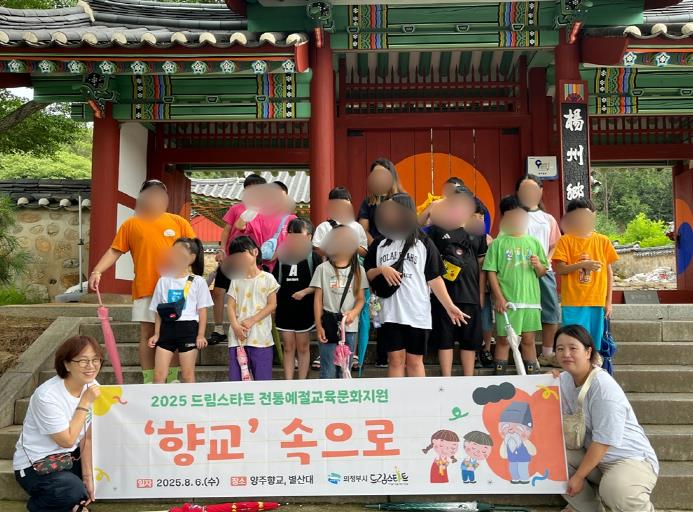 아동들은 먼저 양주향교를 방문해 조선시대 선비의 일상과 유교 사상, 충효의 의미에 대해 배우고, 선비복 착용 체험을 진행했다. 이어 명륜당의 역사와 상징성을 이해하고, 명륜당 모양의 저금통을 만들며 전통 건축물의 가치를 되새겼다.