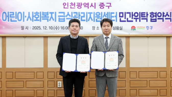 [뉴스노크=김인호 기자] 인천시 중구는 최근 인하대학교 산학협력단과 ‘인천 중구 어린이·사회복지 급식관리지원센터 위탁 운영 협약’을 체결했다고 11일 밝혔다.