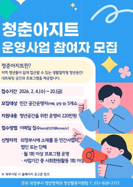 | ▲ 의정부시, 생활밀착형 청년공간 ‘청춘아지트’ 참여 사업자 모집 |