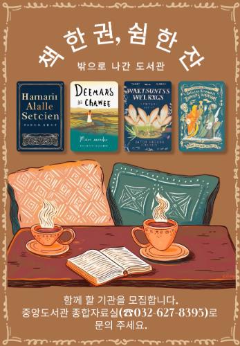 [뉴스노크=김인호 기자] 인천광역시교육청중앙도서관은 시민이 일상에서 손쉽게 책을 접할 수 있도록 인근 카페와 연계한 ‘밖으로 나간 도서관 - 책 한 권, 쉼 한 잔’을 운영한다고 23일 밝혔다.