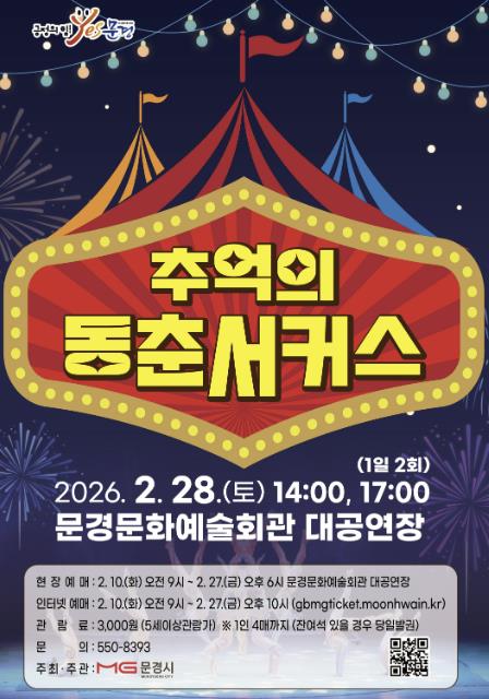 [뉴스노크=김인호 기자] 문경문화예술회관에서는 가족 연인 직장 동료들과 함께 재미있게 볼 수 있는추억의 동춘서커스 공연을 2월 28일(토) 14:00, 17:00 (1일2회)에 문경문화예술회관 대공연장에서 개최한다.