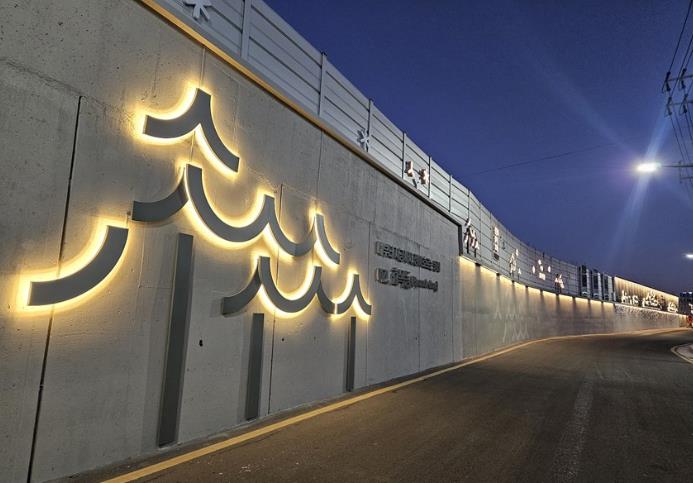 [뉴스노크=김인호 기자] 대구 동구청은 최근 효목지하차도에서 효목네거리 방향으로 설치되어 있는 옹벽 및 방음벽에 공공디자인을 접목한 경관개선사업을 마무리했다.