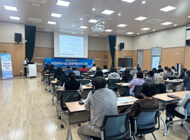 이번 교육은 감염취약시설의 감염관리 체계를 강화하고 감염병 발생 시 신속하고 체계적으로 대응할 수 있도록 하기 위해 마련된 정기 교육으로, 요양병원·장기요양기관·장애인복지시설 등 고위험군이 상시 거주하는 감염취약시설 60여 개소의 감염관리자가 참석했다.