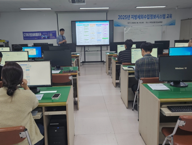 [뉴스노크=김인호 기자] 전남 무안군은 지난 15일 군청 전산교육장에서 부과·징수 담당자 30여 명을 대상으로 ‘2025년 하반기 지방세외수입정보시스템 교육’을 실시했다.