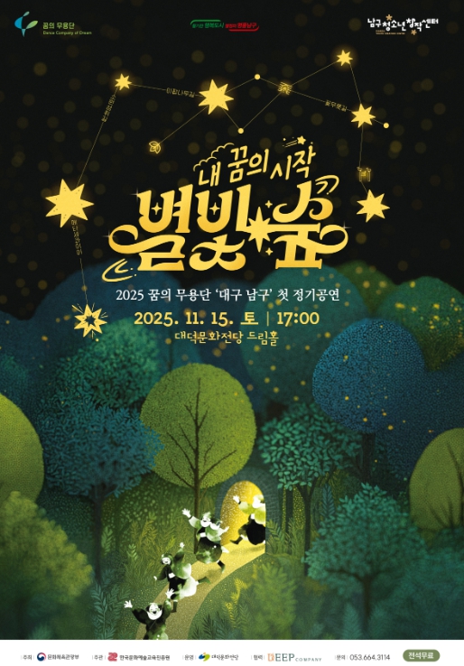 [뉴스노크=김인호 기자] 대구 남구청소년창작센터는 오는 11월 15일 17시 대덕문화전당 드림홀에서 꿈의 무용단 '대구 남구'의 첫 정기공연 ‘내 꿈의 시작, 별빛 숲’을 개최한다고 밝혔다.