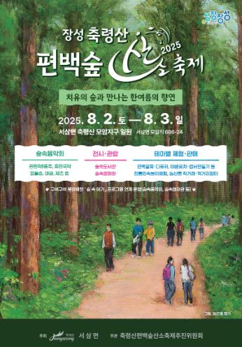 서삼면이 주최하고 축령산편백숲산소축제추진위원회가 주관하는 올해 축제 주제는 ‘치유의 숲과 만나는 한여름의 향연’이다.