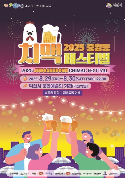 27일 익산시에 따르면 오는 29~30일 '2025 중앙동 치맥 페스티벌'이 개최되고, 30~31일은 '치킨·락 페스티벌'이 열려 도심 전체가 여름밤 축제의 장으로 변신한다.