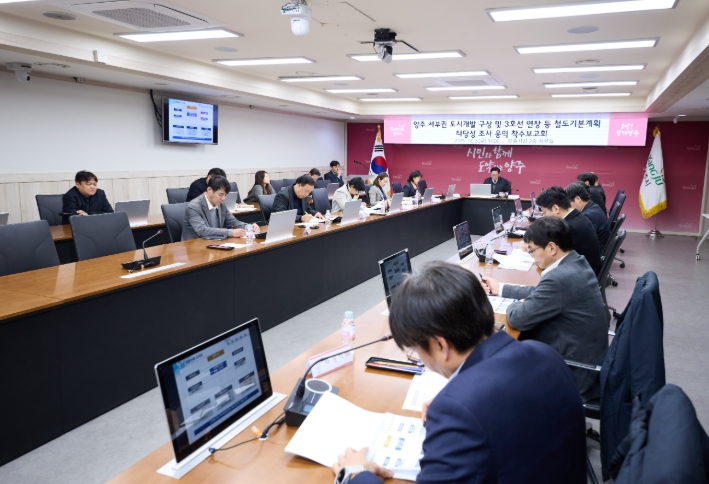 [뉴스노크=김인호 기자] 양주시가 지난 5일 시청 상황실에서 '양주 서부권 도시개발 구상 및 3호선 연장 등 철도기본계획 타당성조사 용역 착수보고회'를 개최했다.