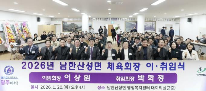 [뉴스노크=김인호 기자] 광주시 남한산성면 체육회는 지난 20일 남한산성면 행정복지센터에서 ‘2026년 남한산성면 체육회장 이·취임식’을 개최했다.