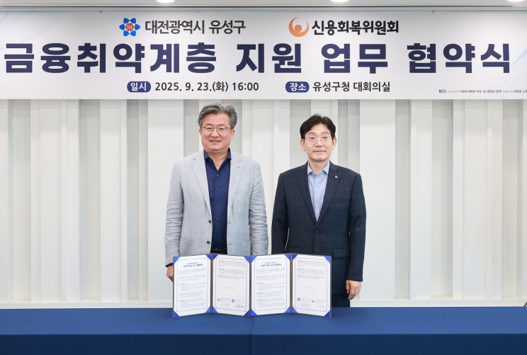 협약에 따라 유성구는 ▲신용회복위원회 사업 홍보와 대상자 추천 ▲금융취약계층 연계·사례관리 등을 추진한다. 신용회복위원회는 ▲금융취약계층 자립 지원과 실무자 교육 ▲협력 모델 발굴 등을 통해 상호 협력을 강화한다.