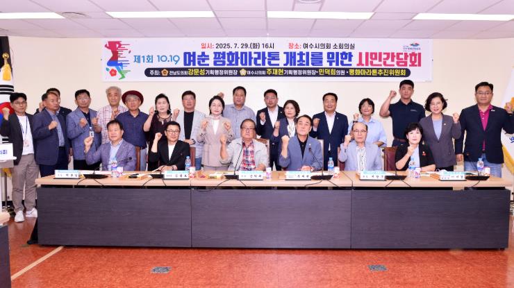 [뉴스노크=김인호 기자] 여수시의회는 지난 29일 소회의실에서 ‘제1회 10·19 여순 평화마라톤 개최를 위한 시민간담회’를 열어 대회의 안전·교통 대책·예산 확보 방안을 논의하며 시민 의견을 폭넓게 청취했다.