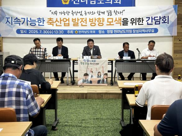 [뉴스노크=김인호 기자] 전라남도의회 정철 의원(더불어민주당·장성1)이 지난 7월 30일 장성군에서 축산업 관계자들과 함께 ‘지속가능한 축산업 발전 방향 모색을 위한 간담회’를 열고 현장의 목소리를 듣는 시간을 가졌다.