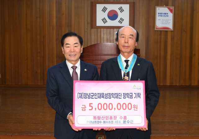 [뉴스노크=김인호 기자] ㈜경남조경수 윤수근 대표가 지난 1일 (재)창녕군인재육성장학재단에 장학금 500만 원을 기탁했다고 밝혔다.