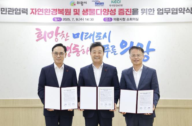 협약에 따라 ▲의왕시는 자연환경복원 대상지 제공 및 사업 완료 후 유지․관리를 맡고 ▲현대로템(주)은 5개년 동안 총 3억원을 투입해 자연환경 복원 사업을 추진하며 ▲한국환경보전원은 복원 활동의 전문적 관리와 지원을 담당하게 된다.