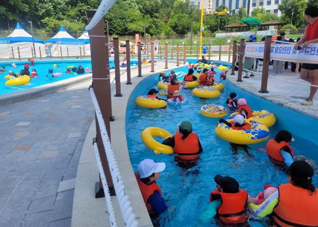 가족 단위 방문객이 주를 이뤘고, 튜브와 물안경 등 물놀이용품으로 만반의 준비를 하는 등 남동 물빛놀이터에 대한 기대감을 여실히 나타냈다.