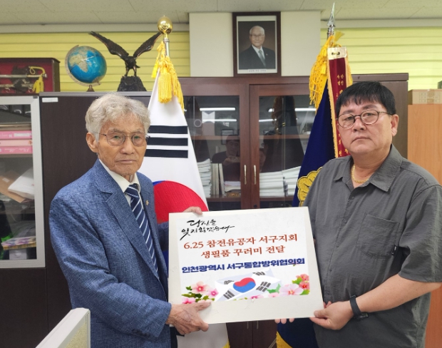 [뉴스노크=김인호 기자] 인천 서구는 인천서구통합방위협의회(회장 이창배)가 호국보훈의 달을 기념하여 지난 2일 6.25. 참전유공자회 서구지회 어르신들에게 위생용품 선물 세트를 전달했다고 밝혔다.