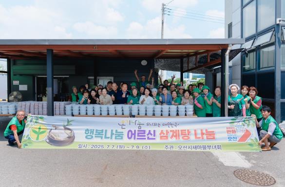 [뉴스노크=김인호 기자] 오산시 새마을부녀회가 9일 지역 내 소외된 이웃을 위한 '행복나눔 사랑의 복달임' 행사를 성공적으로 개최하며 따뜻한 나눔을 실천했다. 이번 행사에는 홍영숙 회장을 비롯한 오산시 새마을회 회원 50여 명이 참여하여 무더운 여름, 취약계층의 건강을 살피는 데 앞장섰다.