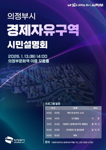 [뉴스노크=김인호 기자] 의정부시는 1월 13일 의정부문화역 이음에서 경제자유구역 지정 추진과 관련한 시민설명회를 개최한다.