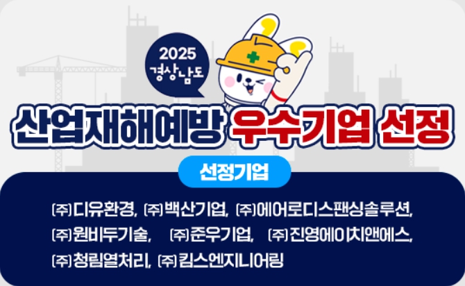 산업재해 예방 우수기업은 지난 9월 접수를 시작으로 서류심사와 고용노동부 지정 안전관리전문기관을 통한 현장평가, 경상남도 산업재해예방위원회의 최종 심의를 거쳐 선정됐다.