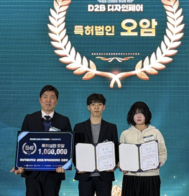 [뉴스노크=김인호 기자] 경상국립대학교 지식재산융합학과 대학원 성현준 팀이 12월 3일 서울 삼성동 코엑스에서 개최된 ‘2025 D2B 디자인페어’에서 은상을 수상했다.
