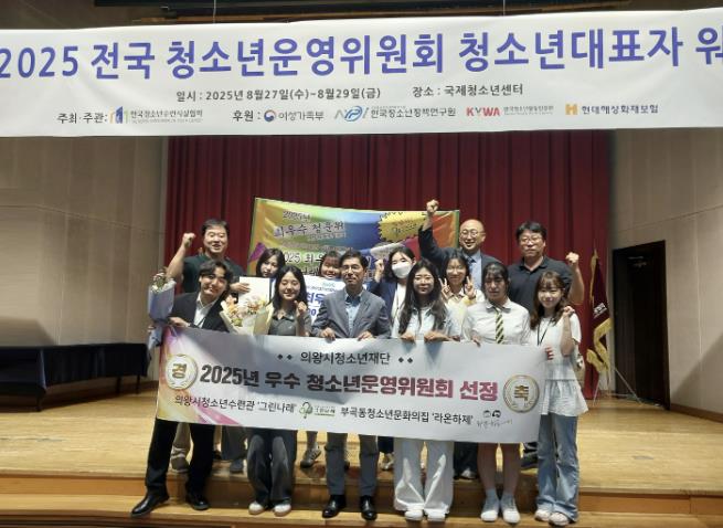 [뉴스노크=김인호 기자] 의왕시청소년재단 산하 의왕시청소년수련관 청소년운영위원회 ‘그린나래’와 부곡동청소년문화의집 ‘라온하제’가 지난 27일 ‘2025년 전국 우수 청소년운영위원회 선정 사업’에서 각각 최우수상과 우수상을 수상했다.
