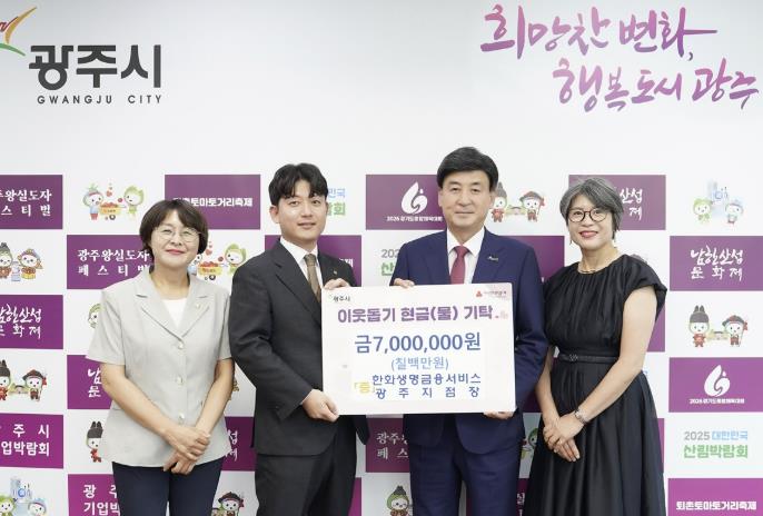 ▲ 한화생명금융서비스·이룸바이오, 광주시에 이웃돕기 성금 기탁 |