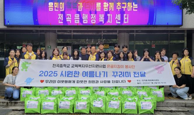 전곡중학교 강경운 교장은 “이번 사업을 통해 혹서기에 우리 주변의 어려운 이웃이 좀 더 안전하고 건강한 일상생활을 유지하는 데 도움이 되기를 바란다”며, “나눔을 함께 실천해 주신 지역사회보장협의체 위원과 봉사단 학생들께 감사드린다”고 밝혔다.