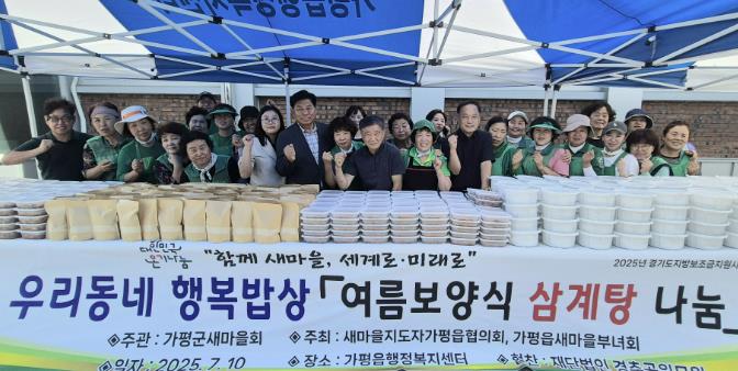 [뉴스노크=김인호 기자] 가평군 가평읍은 새마을지도자가평읍협의회와 가평읍새마을부녀회가 10일 행정복지센터에서 ‘여름 보양식 삼계탕 나눔’ 행사를 성황리에 진행했다고 밝혔다.