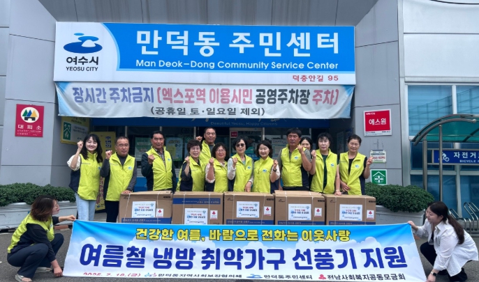 [뉴스노크=김인호 기자] 여수시 만덕동지역사회보장협의체(공동위원장 장혜숙, 류성춘)는 지난 18일 저소득 냉방 취약 가구 25세대를 대상으로 선풍기를 전달해 폭염 취약계층 보호에 나섰다.