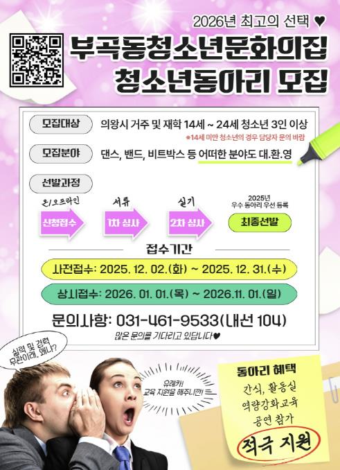 | ▲ 의왕시 부곡동청소년문화의집, 2026년 청소년동아리 모집 |