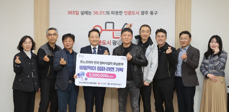 동구 관계자는 “인문도시는 사람을 향한 따뜻한 마음에서 시작된다고 생각한다”며 “어려운 이웃을 위해 나눔을 실천해 주신 르노코리아 전국 정비사업자 호남본부 관계자들께 깊이 감사드리며, 앞으로도 사람 중심의 인문도시 가치 확산과 기본복지가이드라인을 기반으로 한 맞춤형 복지 지원을 지속적으로 추진해 나가겠다”고 말했다.