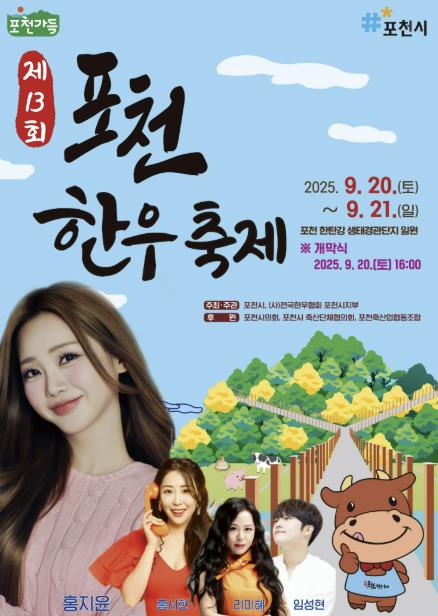 [뉴스노크=김인호 기자] 포천시는 오는 9월 20일부터 21일까지 이틀간 포천 한탄강 생태경관단지에서 ‘제13회 포천한우축제’를 개최한다.
