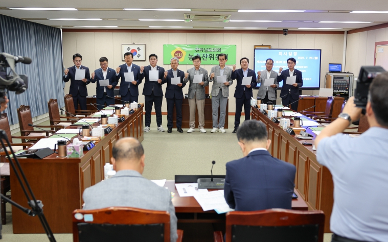 [뉴스노크=김인호 기자] 전라남도의회 농수산위원회(위원장 김문수, 신안1)는 7월 28일, 의회 농수산위원회에서 정부의 한미 통상협상에서 농축산물이 협상 테이블에 올랐다는 사실에 강한 유감을 표하며, 농업을 희생시키는 방식의 통상정책을 즉각 중단할 것을 공식 촉구했다.